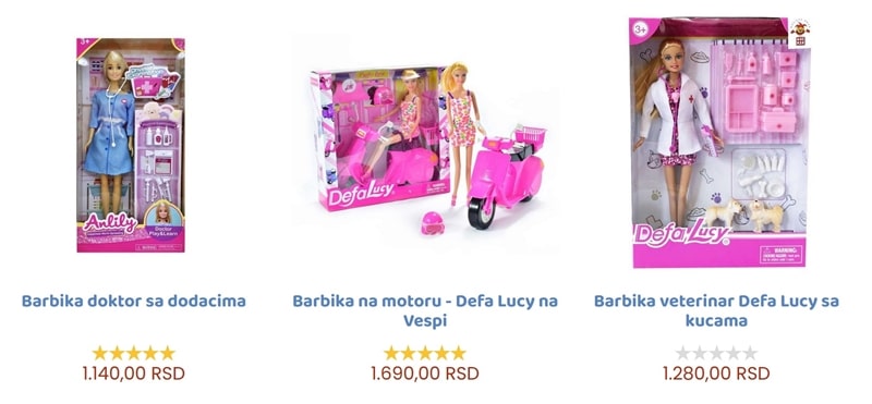Devojčice prosto obožavaju barbike i nikad ih nije dosta. Ako i Vi imate malu ljubiteljku barbika znate da će im pažnja uvek otići u tom smeru kada uđe u prodavnicu igračaka. Ove lutke nisu pusta razonoda. One su jako bitne za razvoj mašte, kreativnosti i govora kod dece. Takođe, svaka je različita pa ne možete da pogrešite. Ako Vam roditelj kaže da njegova devojčica od 6 godina voli barbike, onda nema dileme. Pogledajte ponudu i koju god da odaberete nećete pogrešiti.