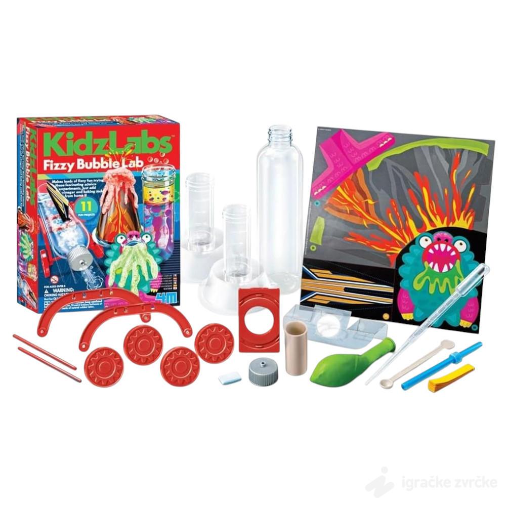 KidzLabs Fizzy Bubble Lab je edukativni naučni set koji omogućava deci da kroz igru otkriju čaroliju hemijskih reakcija. Uz jednostavne i bezbedne eksperimente, mali istraživači mogu da prave penušave mehuriće, reakcije slične vulkanu i razne vizuelno atraktivne efekte.