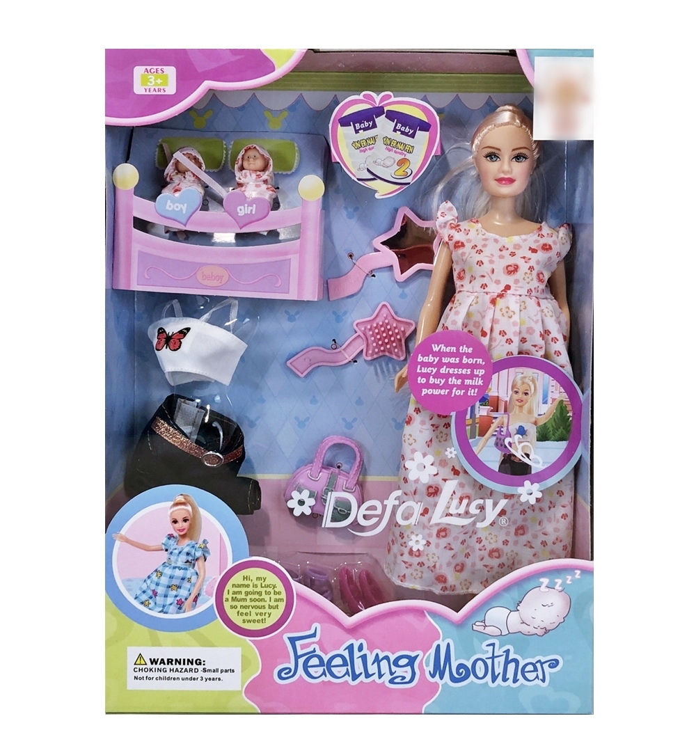Predivna mama Defa Lucy Barbika trudnica sa bebama u setu sa mnogo dodataka je savršen poklon. Ova vrlo kvalitetna barbika će uskoro postati mama blizanaca. Ima stomak u kome nosi bebe odakle ih možete izvaditi i napraviti im kolevku. Barbika trudnica čeka dve predivne beba, dečaka i devojčicu. Barbika sa blizancima je poseban set za igru, divan i nežan. Pored barbike i beba dobijate još i odeću za barbiku, cipele, tašnu, češalj i ogledalce.