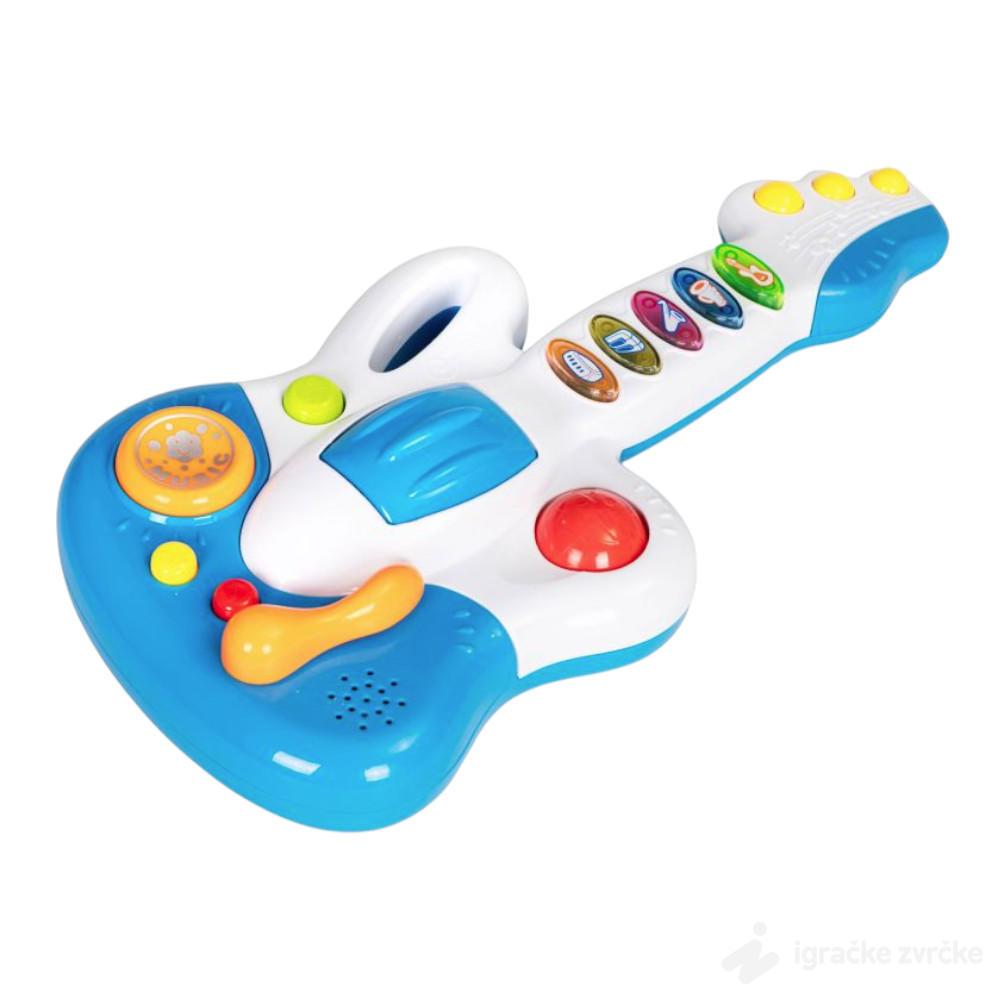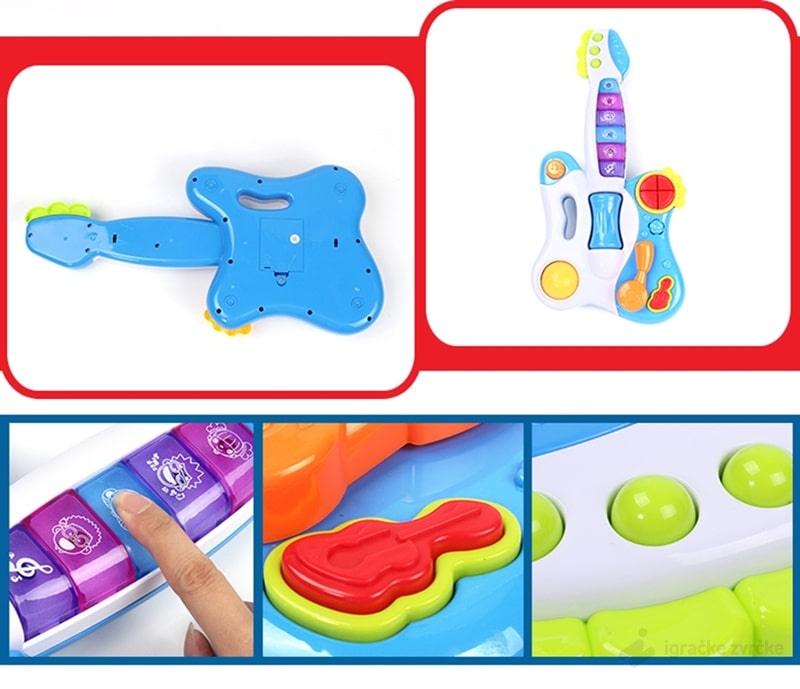 Gitara za bebe ima razne dugmiće koji svetle i proizvode zvukove. Tipke koje služe kao bubanj će dodatno upotpuniti doživljaj. Vaši mališani će se ludo zabaviti i izmoriti nakon koncerta. Muzičke igračke razvijaju sluh i muziklanost Vašeg deteta.
