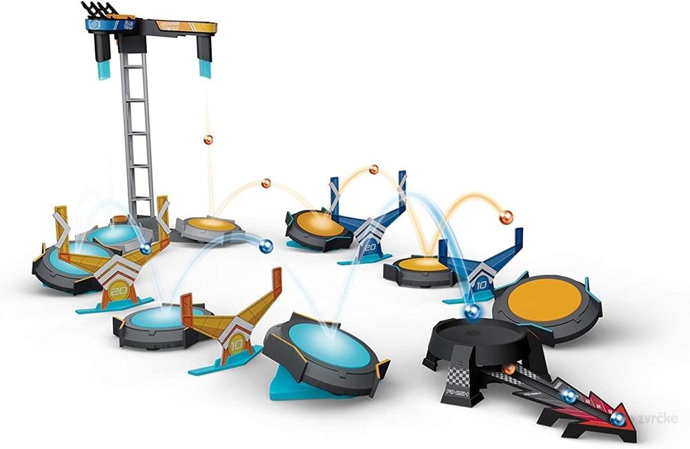 BOOM TRIX igra sa trambolinom i lopticama je ekstremna igra sa lansirnim tornjem, trampolinama, preprekama i neizvesnim završetkom. Zadatak je da navedete lopticu na kurs i iskoristite gravitaciju da pogodite sve trampoline. Ako uspete, loptica će završiti na cilju! Ova igra nije naivna i potrebno je malo sreće i mnogo veštine da pobedite svoje protivnike. Pogodno za uzrast 8+. Dimenzije pakovanja 35x50cm.