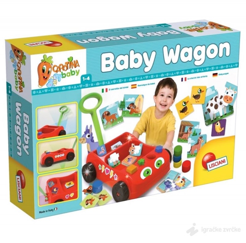 Carotina Edukativno vozilo Baby Wagon Lisciani je osmišljeno kao set koji je zabavan i edukativan. Carotina vozilo je napravljeno od plastike i ima ručku pomoću koje se gura ili vuče. U setu dobijate i 4 Carotina edukativne igre.