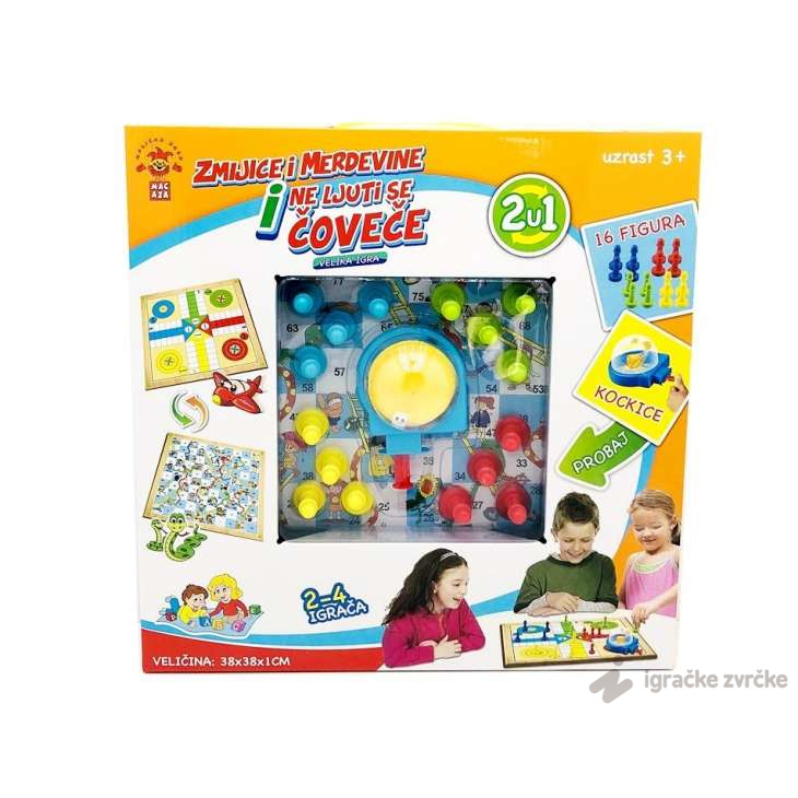 Čoveče Ne ljuti se je jedna od najpopularnijih društvenih igrara već decenijama. I odrasli vole da se igraju i nadmudruju, a kada neko nekoga pojede nema ljutnje! Zato se i zove Covece na ljuti se. U setu covece ne ljuti se plasticni dobijate tablu za igru, pijune i kockicu, ali ovo nije sve!