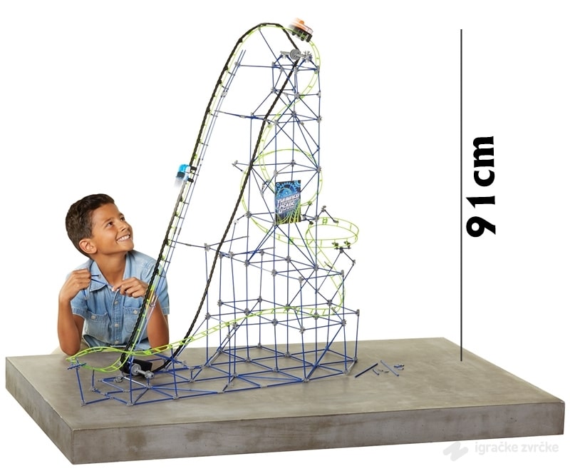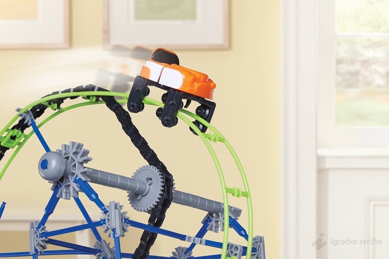 Ova konstrukcija poseduje sistem pokretanja vozila koje se dobija u kompletu. Vožnja je zabavna i detetu će predstaviti uticaj fizike na tela koja se kreću. Rolerkoster ima mnogo okreta, obrat i padova.