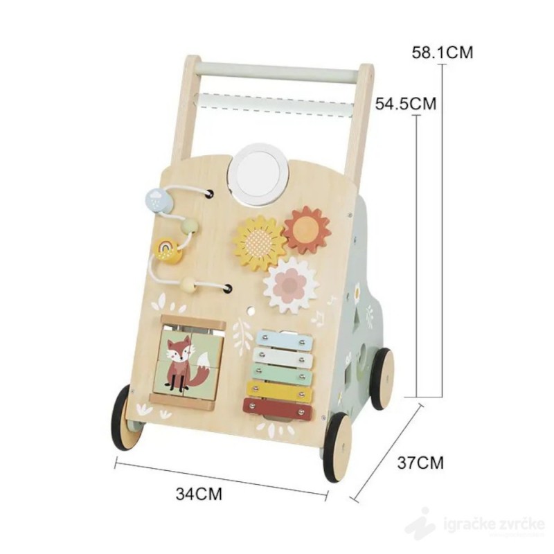 PRVA MONTESORI IGRAČKA Edukativna drvena prohodavalica MULTIFUN je sveobuhvatna ineraktivna igračka napravljena od kvalitetnog drveta sa raznim dodacima. Ova drvena hodalica nudi puno različitih aktivnosti koje će dete samo otkrivati i uz to se sjajno zabaviti.
