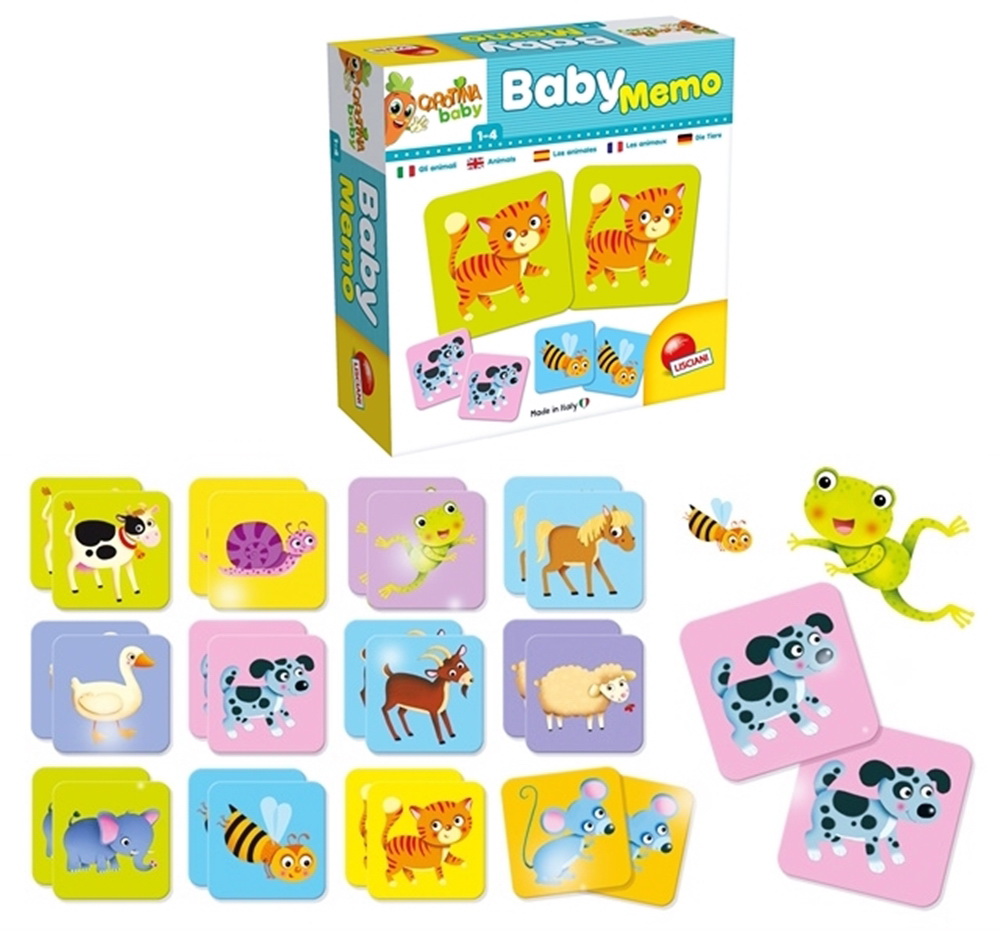 Pravila igre Carotina memorije su jednostavna: stavite kartice okrenute poledjinom na gore i neka dete podiže jednu po jednu karticu, pamti koja je životinja na slici i vraća na isto mesto. Kada nađe na već viđenu životinju, treba da se seti gde je bila predhodna i napravi par. Super zabavan poklon! U kutiji Carotina Baby Memo dobijate 24 kartice od čvrstog kartona. Proizvedeno u Italiji. Dimenzije pakovanja: 19x19x6cm.