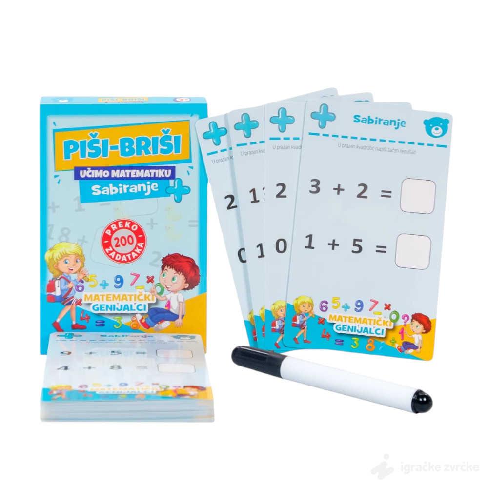 • Set od 50 piši briši karata deci će pomoći da na jednostavan i zabavan način nauče matematičku operaciju sabiranja