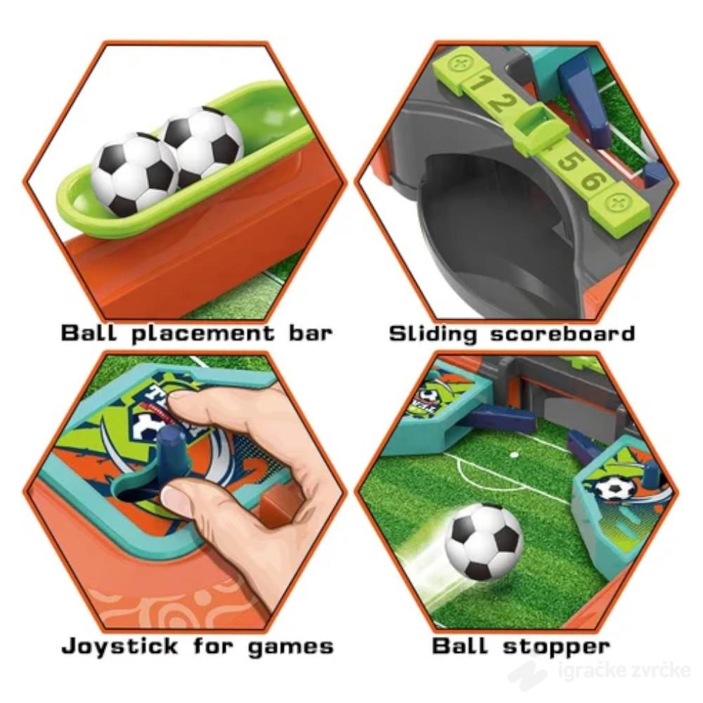Ova stona fudbal igra donosi pravu malu fudbalsku avanturu direktno na sto! Deca mogu da se takmiče jedan na jedan koristeći male džojstike za upravljanje igračima, dok lopta brzo leti preko terena kao u pravoj utakmici.
