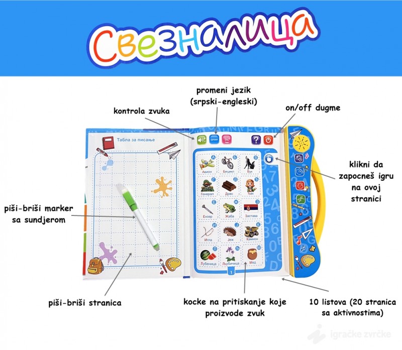 Pre svega zadovoljna sam brzinom odgovora na porudžbinu,na brzinu isporuke,a o sveznalici sve pohvale, uči nove reči sin od godinu dana,a i ćerka od 4. Sve preporuke! » Odgovori na komentar