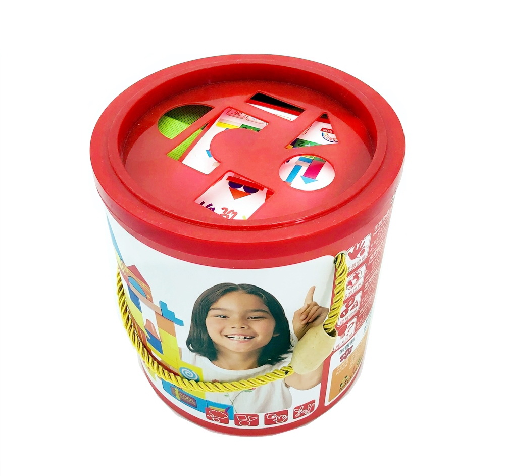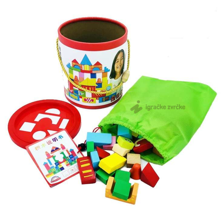 Kocke za decu od drveta su jedna od najboljih igračaka za razvijanje motorike i konstrutorskih sposobnosti. Ove drvene kockice za decu su napravljene od kvalitetnog drveta koje se ne peruta. Boje su bezbedne za igru. Zbog sitnijih delova se preporučuju za uzrast preko 3 godine. Napravite kule, kućice, mostove i robote, šta god Vam padne na pamet. Kocke za decu od drveta dolaze u zgodnom pakovanju sa ručkom, u vrećici u koju ih spakujete kada se igra završi. Pored svega toga, imate i otvore na poklopcu da vežbate igru pogadjanja oblika. Sjajan poklon!