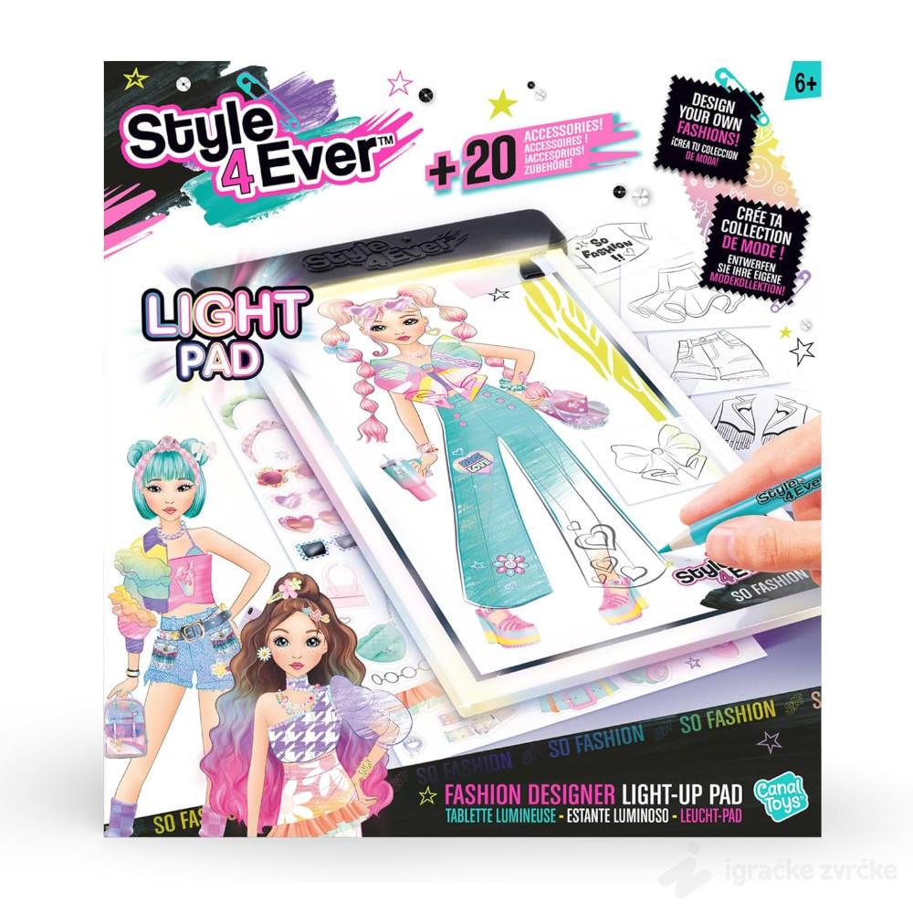 Style 4 Ever Fashion Designer Light Pad je sjajan kreativni set za decu koja vole modu, crtanje i maštanje o sopstvenim kreacijama.
