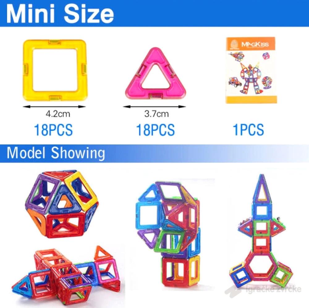 Magnetne pločice za decu MAGKISS (36kom) su jako popularne u svetu, a sada ih možete kupiti i kod nas! Pružaju priliku Vašem detetu da razvija svoje konstruktorske sposobnosti na potpuno nov način. Uklapaju se kao ni jedne kocke do sad - po strani! Uz njih deca vežbaju motoriku i maštu.