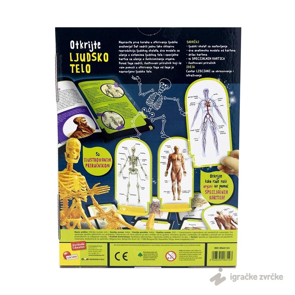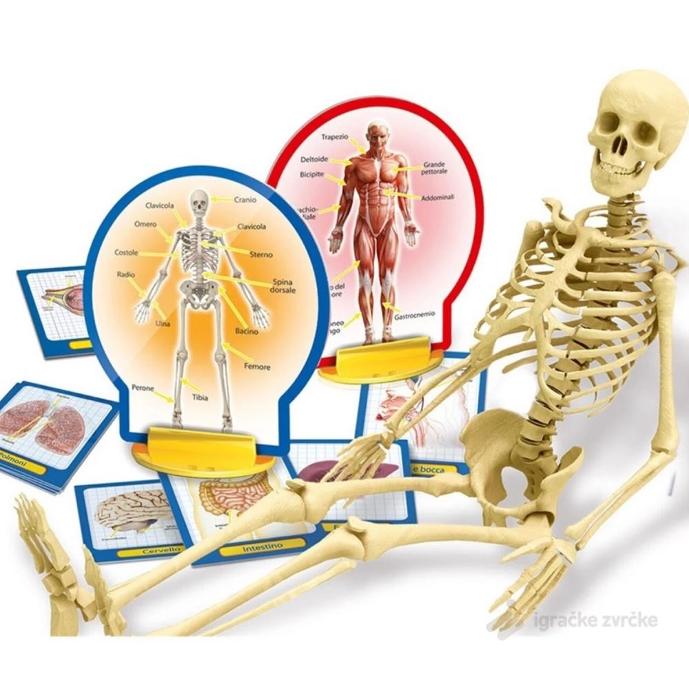 Mali Genije Otkrijte ljudsko telo naučni set za male istraživače. Ovaj sjajan edukativan set za igru ima sve što je potrebno Vašem malom naučniku da započne otkrivanje ljudskog tela. Set sadrzi lako sklopivu reprodukciju ljudskog skeleta, držač, dva modela za učenje o sistemima ljudskog organizma, 12 specijalnih kartica za učenje o funkcionisanju organa kao i ilustrovani prirucnik. Savršen poklon za osnovce!