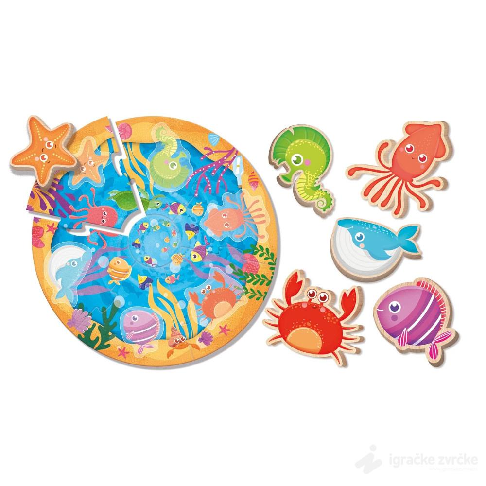Montesori Baby Edukativna drvena slagalica Sea puzzle okrugla 13 delova 96916