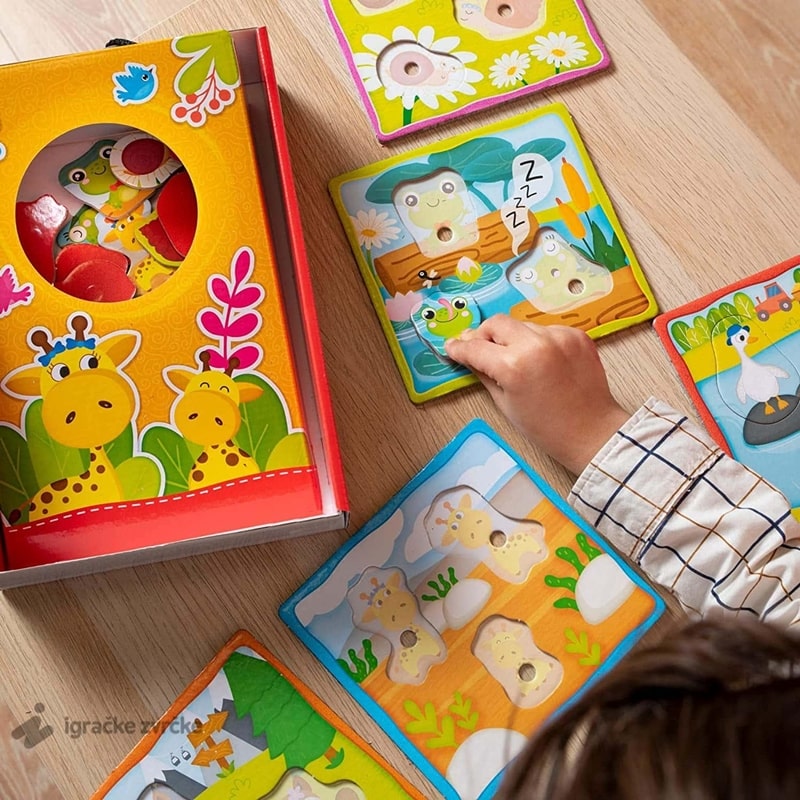 Delovi su veliki i pogodni za male dečije ruke. Vaše dete će biti jako srećno kada shvati cilj igre i uspešno uklopi životinje. Montesori igračke su pravi izbor za roditelje koji uvek žele više za svoje dete.