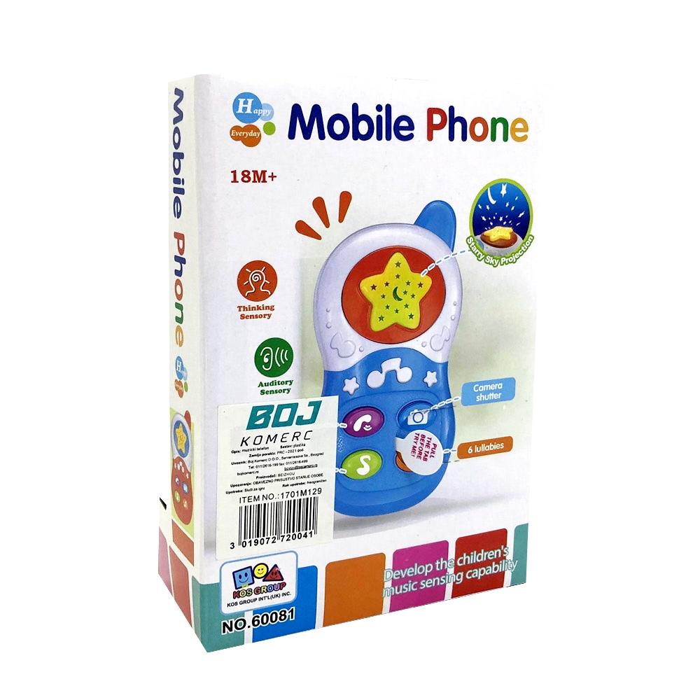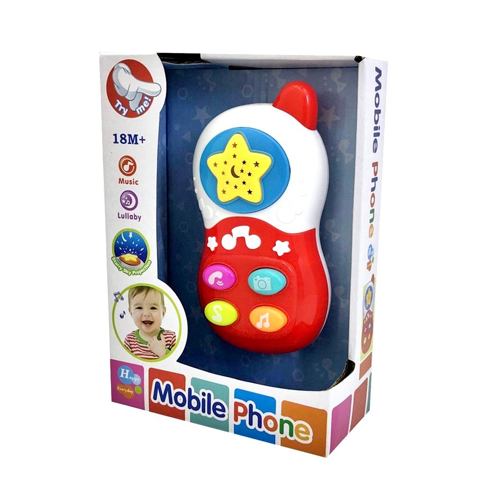 Muzički telefon za bebe sa projektorom će se svideti svakom bebcu. Igračka ima divan dizajn i vesele boje. Poseduje zvučne i svetlosne efekte. Na telefonu postoje otvori kroz koje se projektuje zvezano nebo, što će bebama biti jako zanimljivo. Telefon za bebe je uvek popularna igračka i dobar poklon. Preporučen uzrast 18+ meseci. Dimenzije pakovanja 19x13x6cm.