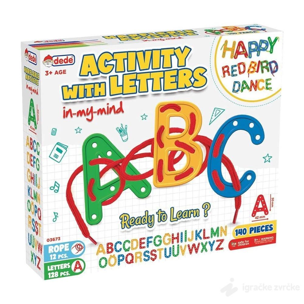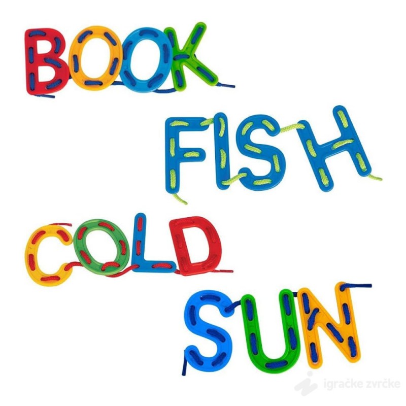 • Set sarži slova sa rupicama i pertle koje provlačite kroz slova