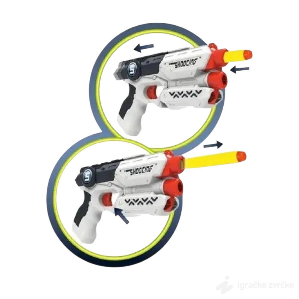 Pištolj na mekane metke donosi puno zabave i akcije u dečiju igru, jer deca mogu zamišljati razne pustolovine dok nišane i pogađaju svoje mete. Lagan je i jednostavan za upotrebu, pa ga i mlađa deca mogu lako koristiti. Set sadrži pištolj i mekane metke od pene, koji su bezbedni i prilagođeni za igru u zatvorenom i na otvorenom prostoru.