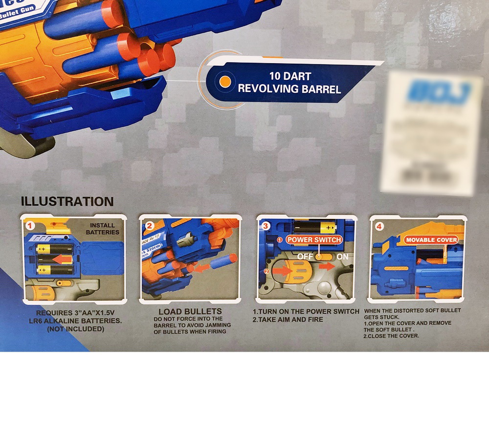 U ovom kompletu dobijate sjajno dizajniran pištolj, 20 metaka i metu. Ovaj moćan Pistolj sa sundjerastim metkovima radi na baterije što će igru učiniti još zanimljivijom! Obradujte Vašeg Zvrka ovom kvalitetnom igračkom! Dimenzije pakovanja su 40x30cm.