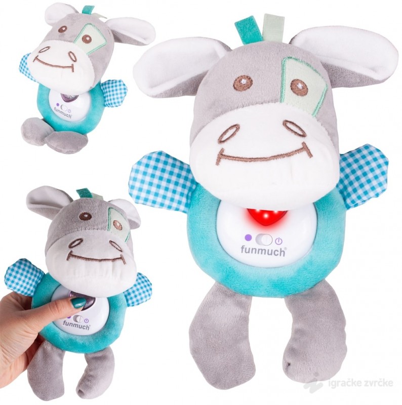 OMILJEN DRUGAR VAŠEG BEBCA Plišana Muzička Uspavanka sa svetlom KRAVICA PLAVA će biti omiljen drugar Vašeg mezimca. Maziće se i igrati njom, razgledati je i glodati.