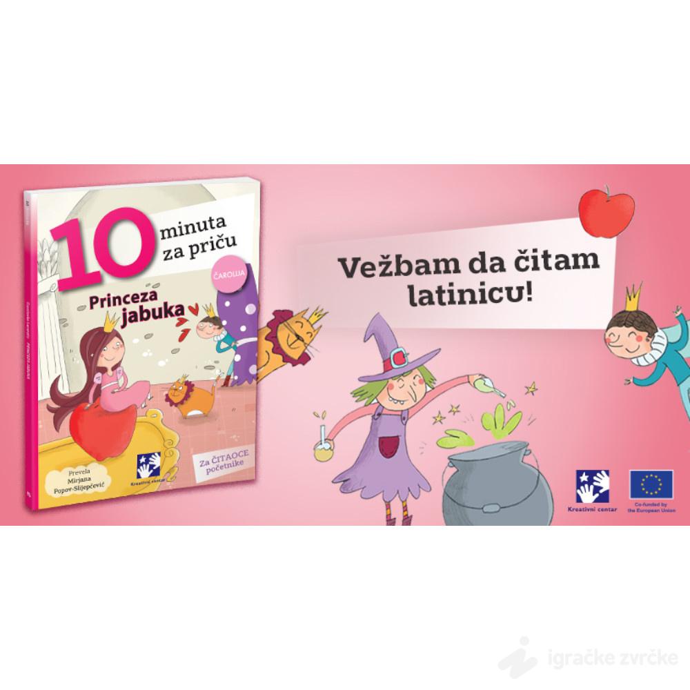 Bajka o princezi skrivenoj u jabuci, princu koga je očarala njena lepota i slugi čija je tetka veštica s devojke skinula čaroliju pomoći će čitaocima početnicima u čitanju i pisanju latiničkih slova.