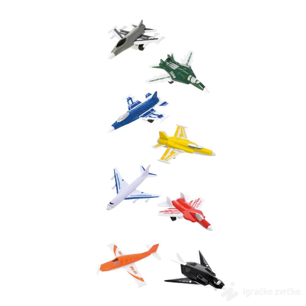 Set od 8 metalnih aviona donosi raznolikost i boje direktno u dečiju igru. Svaki avion ima poseban dizajn – od putničkih aviona do vojnih lovaca – i pruža beskrajne mogućnosti za maštovite letove i “misije”. Avioni su dovoljno mali da stanu u ruku, ali dovoljno čvrsti da izdrže duže igranje.