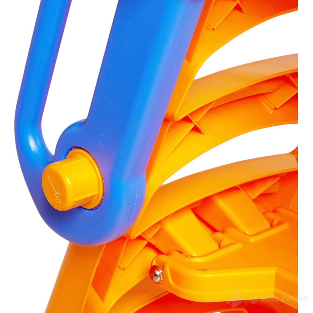 Široke stepenice i visoki rukohvati dodatno olakšavaju korišćenje i daju sigurnost pri svakom koraku. Poseban dodatak je mogućnost priključivanja vode, što ovaj tobogan pretvara u pravu malu vodenu avanturu tokom toplih dana.