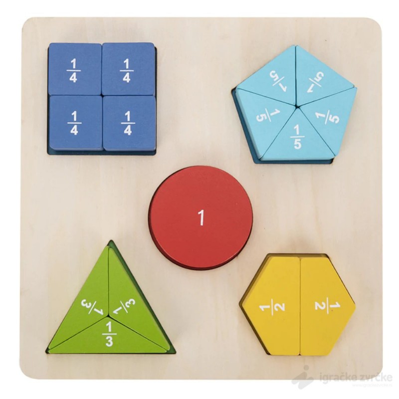 • Edukativna igračka dizajnirana za sortiranje oblika i učenje frakcija