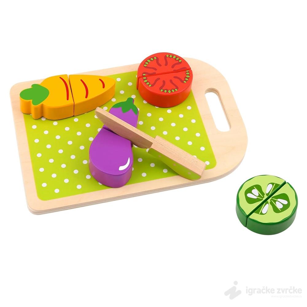Tooky Toy Drveno čičak povrćee je presladak drveni set za serviranje i seckanje povrća.