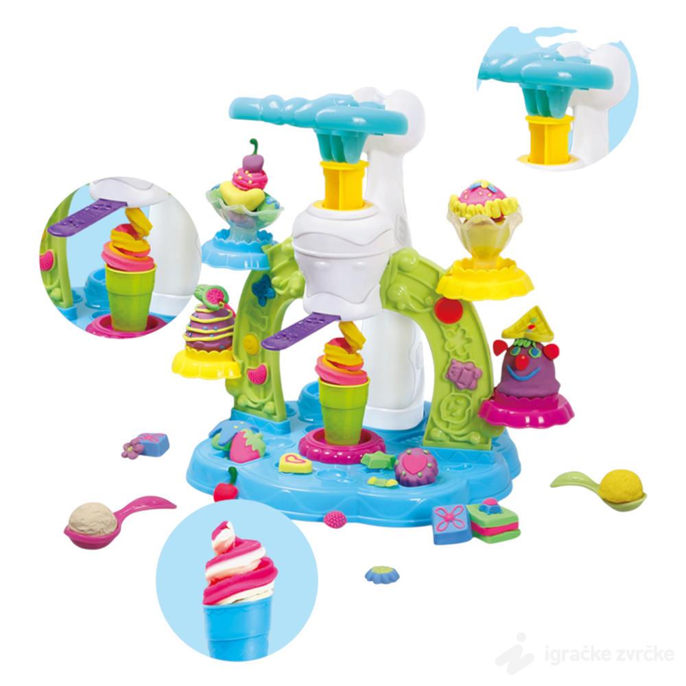 Ovaj bogat set sa plastelinom omogućava deci da prave sladolede, kolače i razne slatke oblike pomoću posebne mašine za oblikovanje. Kroz jednostavan mehanizam pritiskanja i veliki broj kalupa, dete samo kreira svoje „poslastice“.