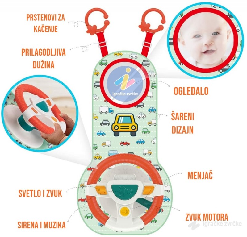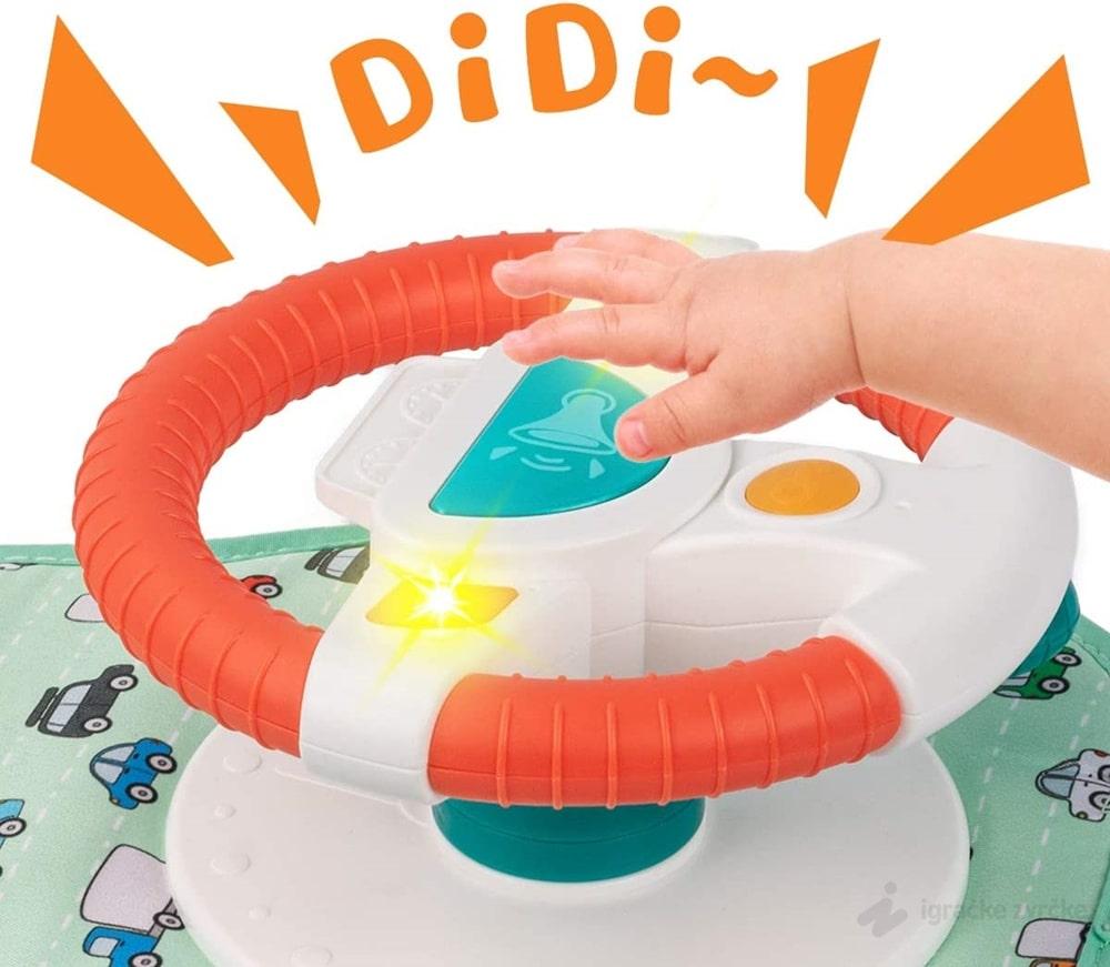 Ova igračka je fantastično dizajnirana i namenjena vožnjama koje mogu da budu dugačke i dosadne. Volan olakšava vožnju i znaćete da se bebac super zabavlja čak i dok ste u koloni.